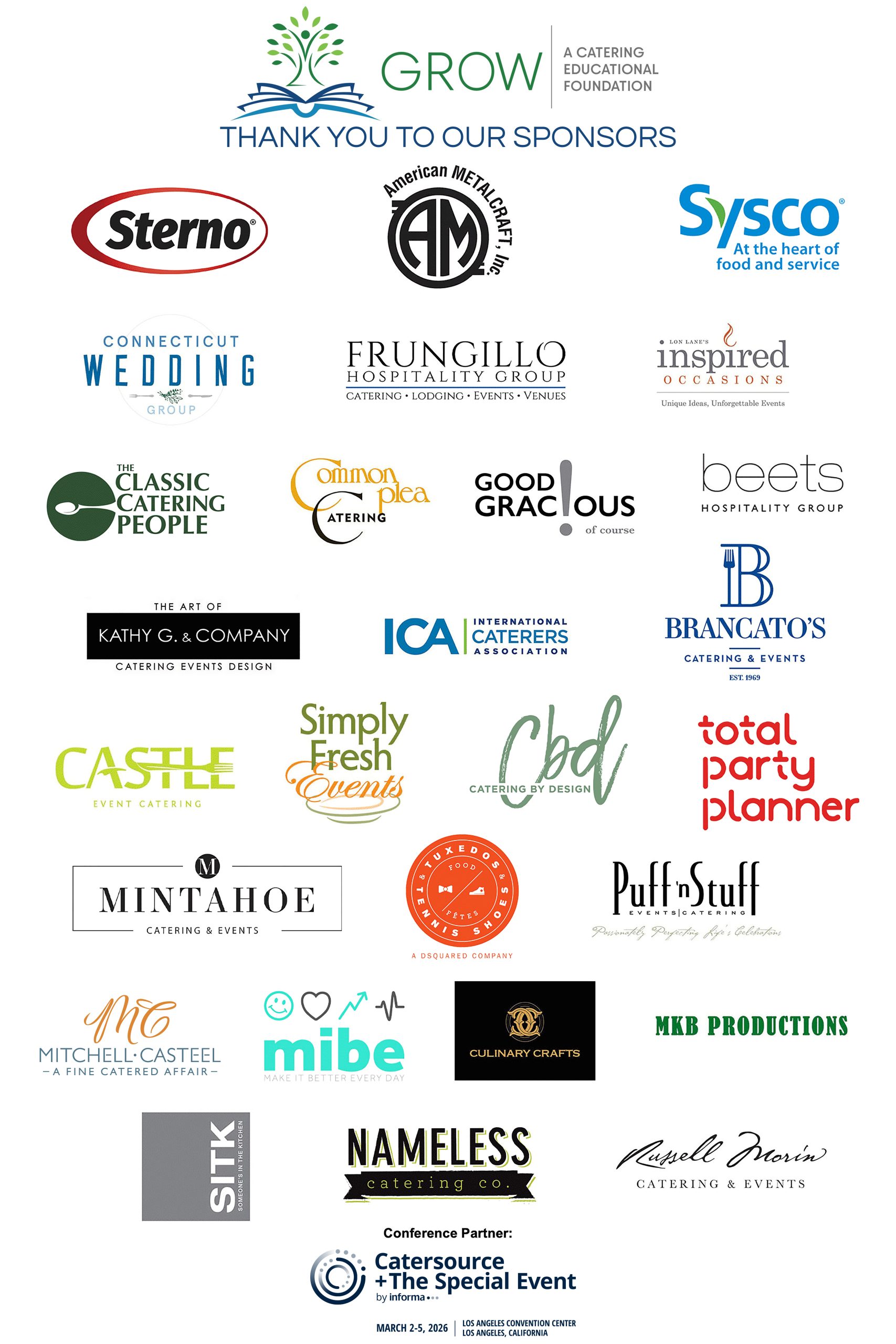 The Foundation makes it possible for qualified individuals, including owners, managers and employees of catering companies to attend designated educational conferences. The Catersource Conference and Tradeshow is scheduled for March 2-5, 2026 in Los Angeles, CA.